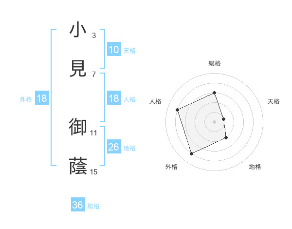 小見 御蔭さんの総格は36画の3点!