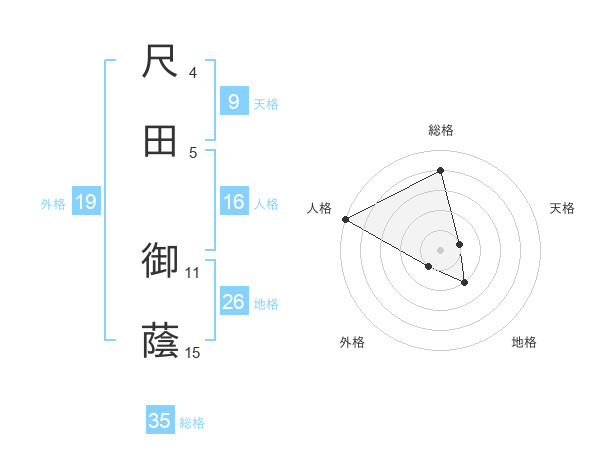 尺田 御蔭さんの総格は35画の4点!