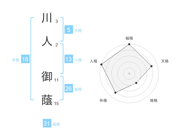 川人 御蔭さんの天格は5画の4点!
