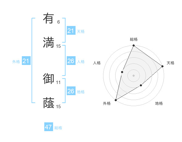 有満 御蔭さんの総格は47画の5点!