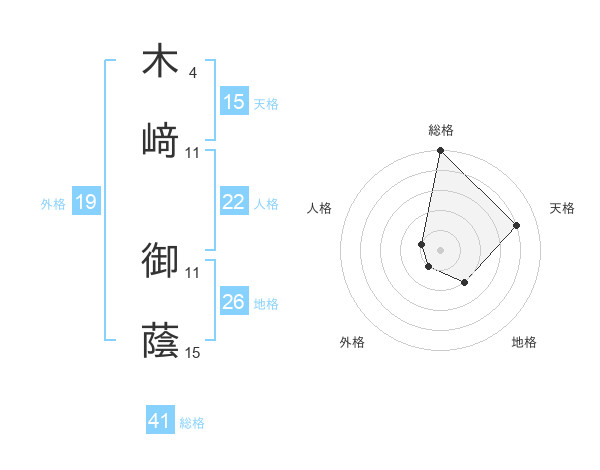 木﨑 御蔭さんの天格は15画の4点!