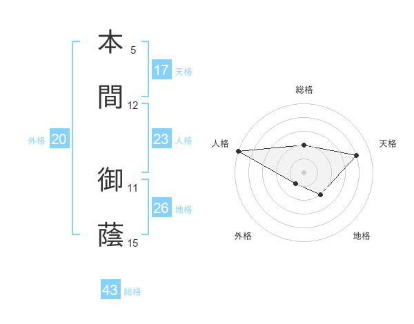 本間 御蔭さんを姓名の画数から五運を鑑定