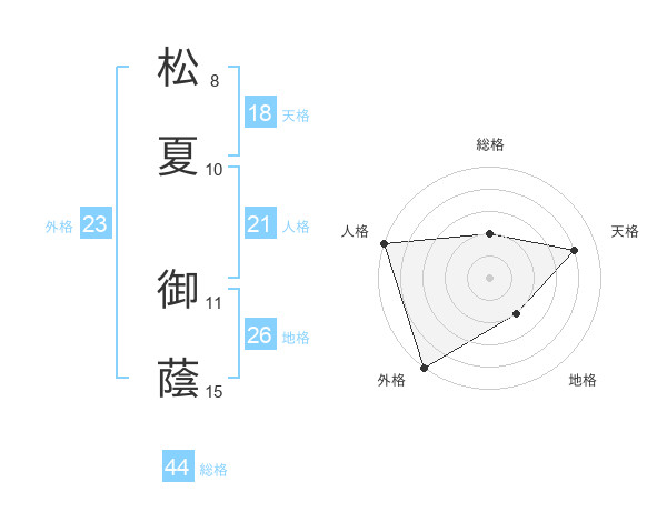 松夏 御蔭さんを姓名の画数から五運を鑑定