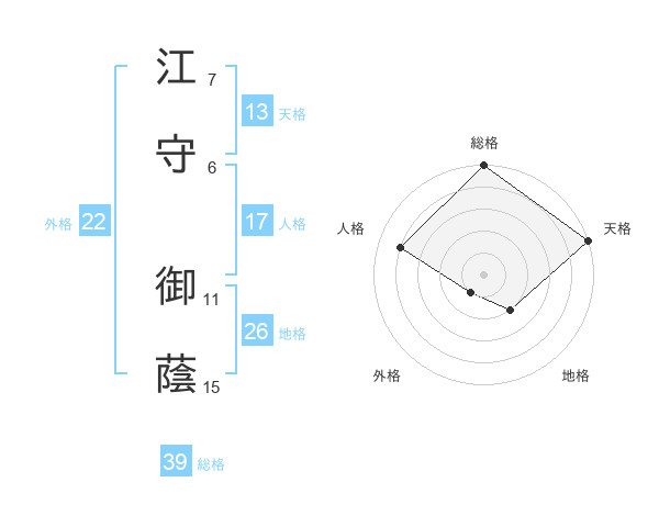 江守 御蔭さんの総格は39画の5点!