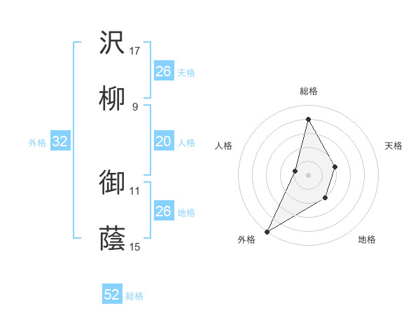 沢柳 御蔭さんの総格は52画の4点!