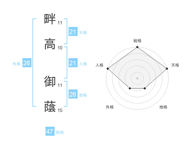 畔高 御蔭さんを姓名の画数から五運を鑑定