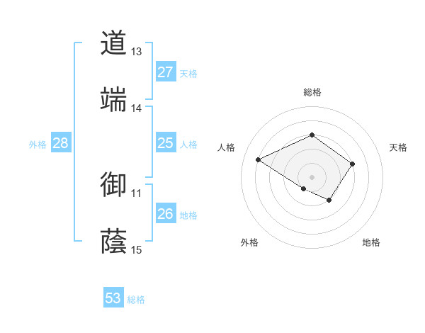 道端 御蔭さんの総格は53画の3点!