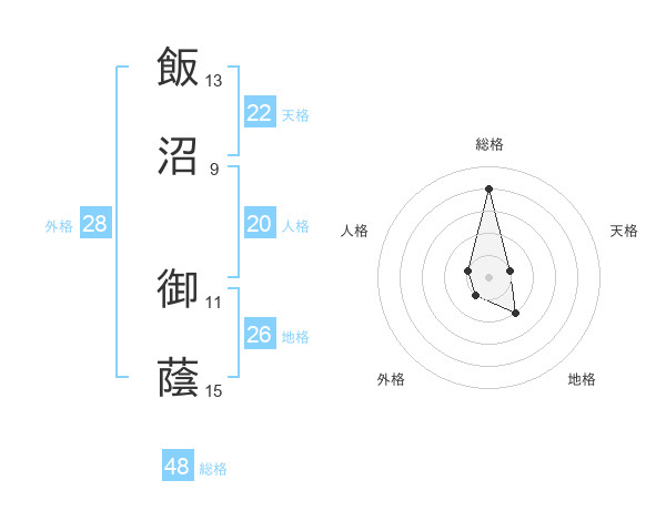 飯沼 御蔭さんの総格は48画の4点!