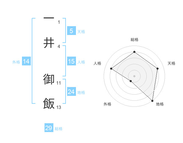 一井 御飯さんの総格は29画の4点!