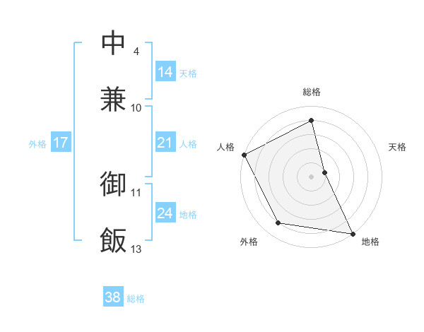 中兼 御飯さんを姓名の画数から五運を鑑定