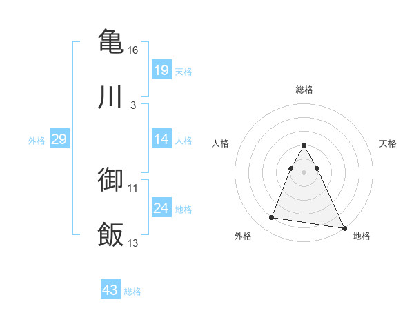 亀川 御飯さんを姓名の画数から五運を鑑定