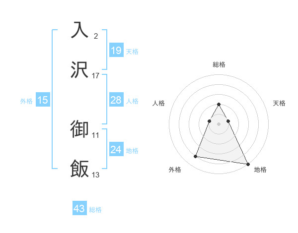 入沢 御飯さんを姓名の画数から五運を鑑定