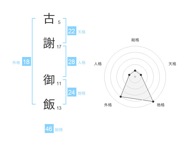 古謝 御飯さんを姓名の画数から五運を鑑定