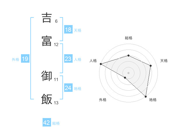 吉富 御飯さんの総格は42画の3点!