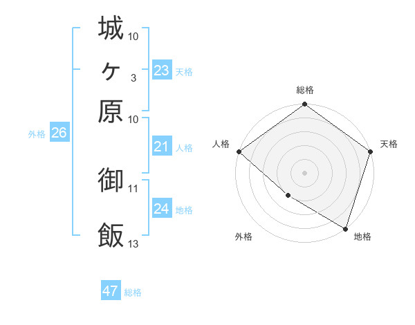城ヶ原 御飯さんを姓名の画数から五運を鑑定