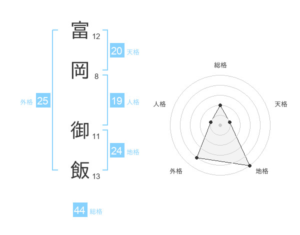 富岡 御飯さんの総格は44画の2点!