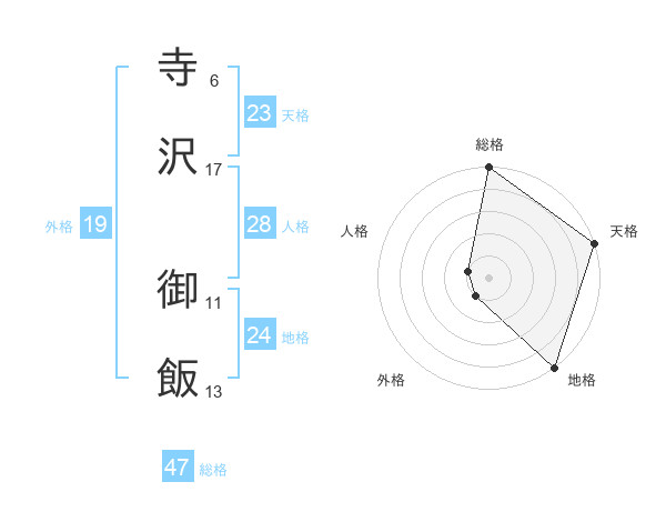 寺沢 御飯さんの天格は23画の5点!