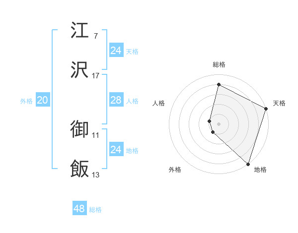 江沢 御飯さんの地格は24画の5点!