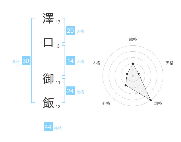 澤口 御飯さんの総格は44画の2点!