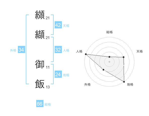 纐纈 御飯さんの総格は66画の1点!