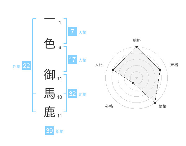一色 御馬鹿さんを姓名の画数から五運を鑑定