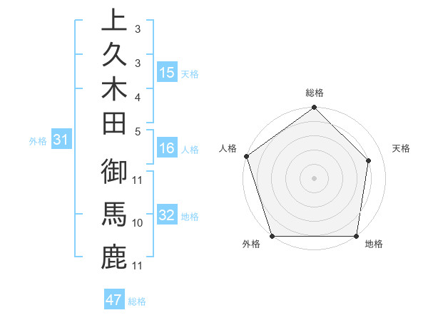 上久木田 御馬鹿さんを姓名の画数から五運を鑑定