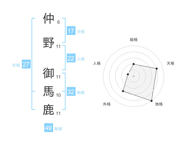 仲野 御馬鹿さんを姓名の画数から五運を鑑定