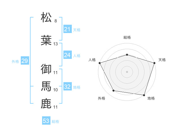 松葉 御馬鹿さんを姓名の画数から五運を鑑定