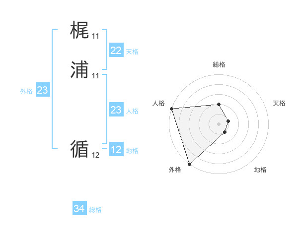 梶浦 循さんの外格は23画の5点!