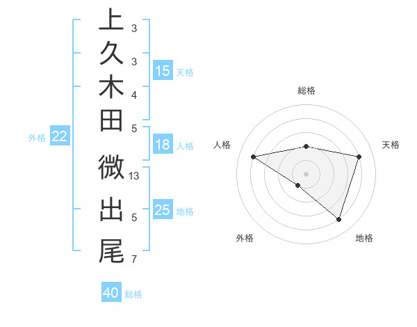上久木田 微出尾さんを姓名の画数から五運を鑑定