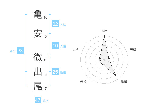 亀安 微出尾さんを姓名の画数から五運を鑑定