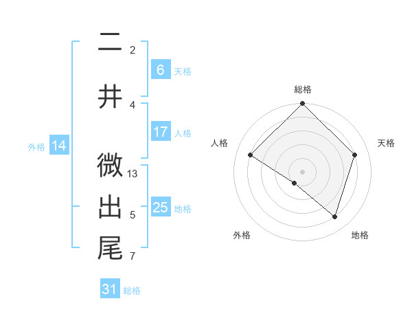 二井 微出尾さんを姓名の画数から五運を鑑定