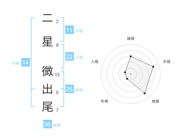 二星 微出尾さんの天格は11画の4点!