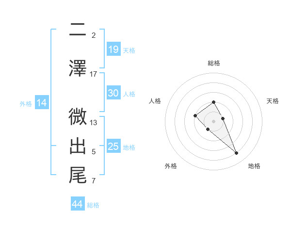 二澤 微出尾さんの総格は44画の2点!
