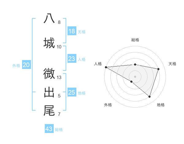八城 微出尾さんの天格は18画の4点!