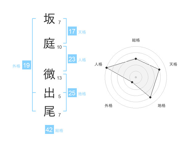 坂庭 微出尾さんの総格は42画の3点!
