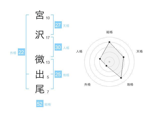 宮沢 微出尾さんを姓名の画数から五運を鑑定