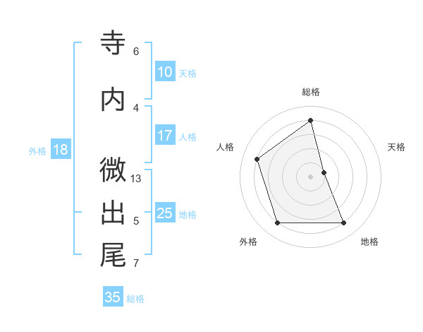 寺内 微出尾さんの総格は35画の4点!