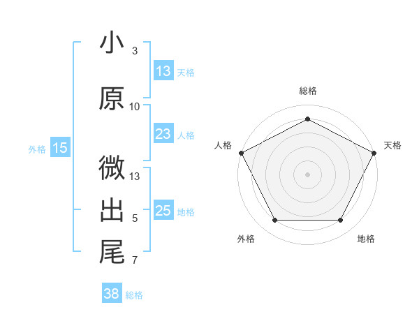 小原 微出尾さんの総格は38画の4点!