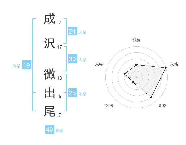 成沢 微出尾さんを姓名の画数から五運を鑑定
