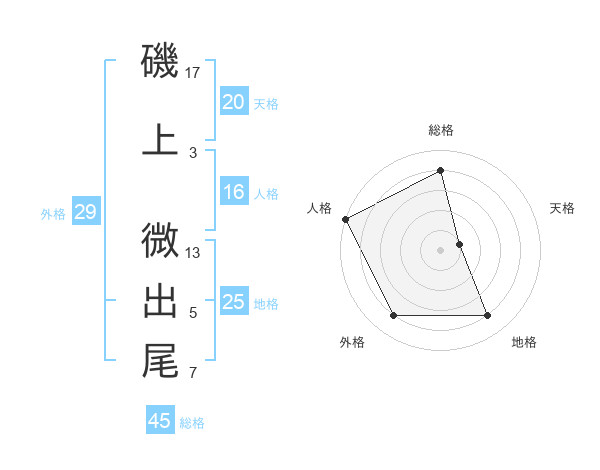 磯上 微出尾さんを姓名の画数から五運を鑑定