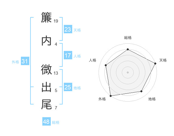 簾内 微出尾さんを姓名の画数から五運を鑑定