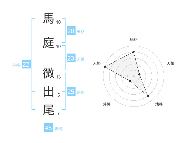 馬庭 微出尾さんの総格は45画の4点!