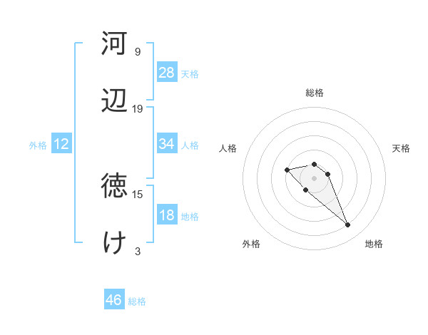 河辺 徳けさんの総格は46画の1点!