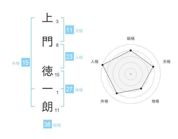 上門 徳一朗さんを姓名の画数から五運を鑑定