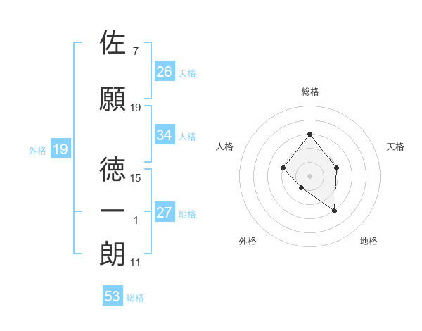 佐願 徳一朗さんの総格は53画の3点!