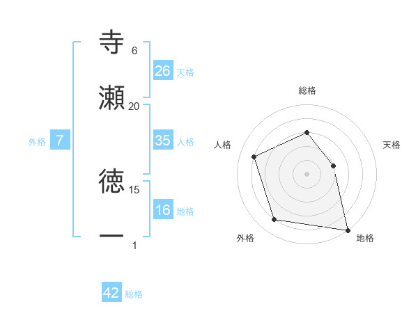 寺瀬 徳一さんを姓名の画数から五運を鑑定