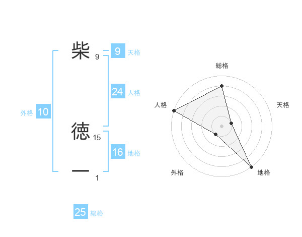 柴 徳一さんの総格は25画の4点!