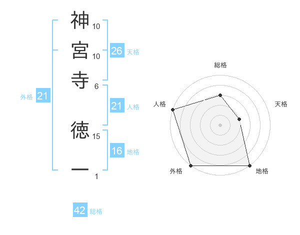 神宮寺 徳一さんを姓名の画数から五運を鑑定