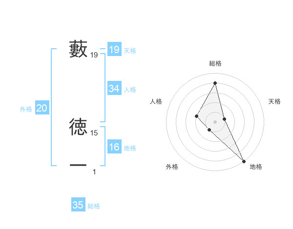 藪 徳一さんの天格は19画の1点!